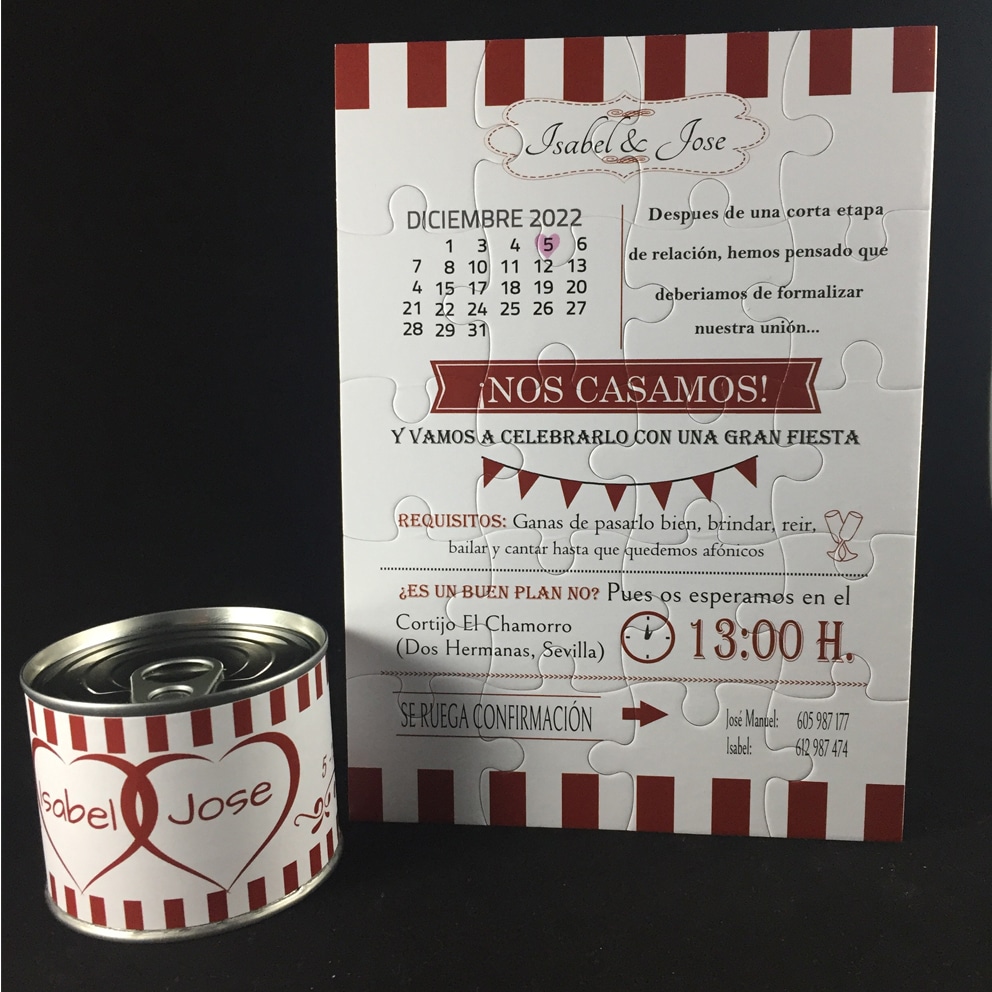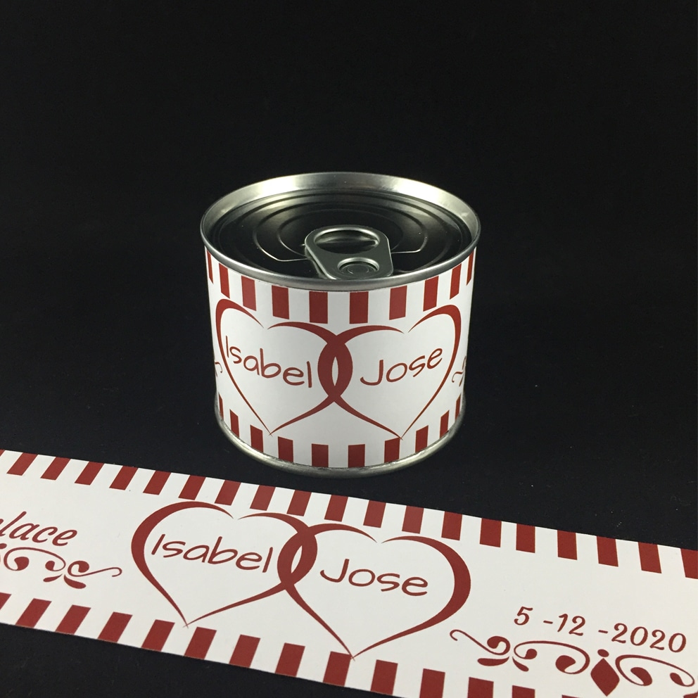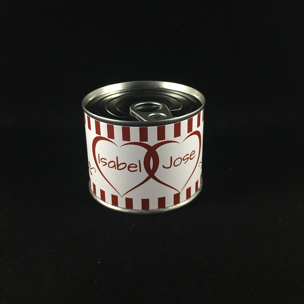 Troquelado en 20 piezas y envasado en lata de conservas cerrada herméticamente con abre fácil y tapa de plástico.