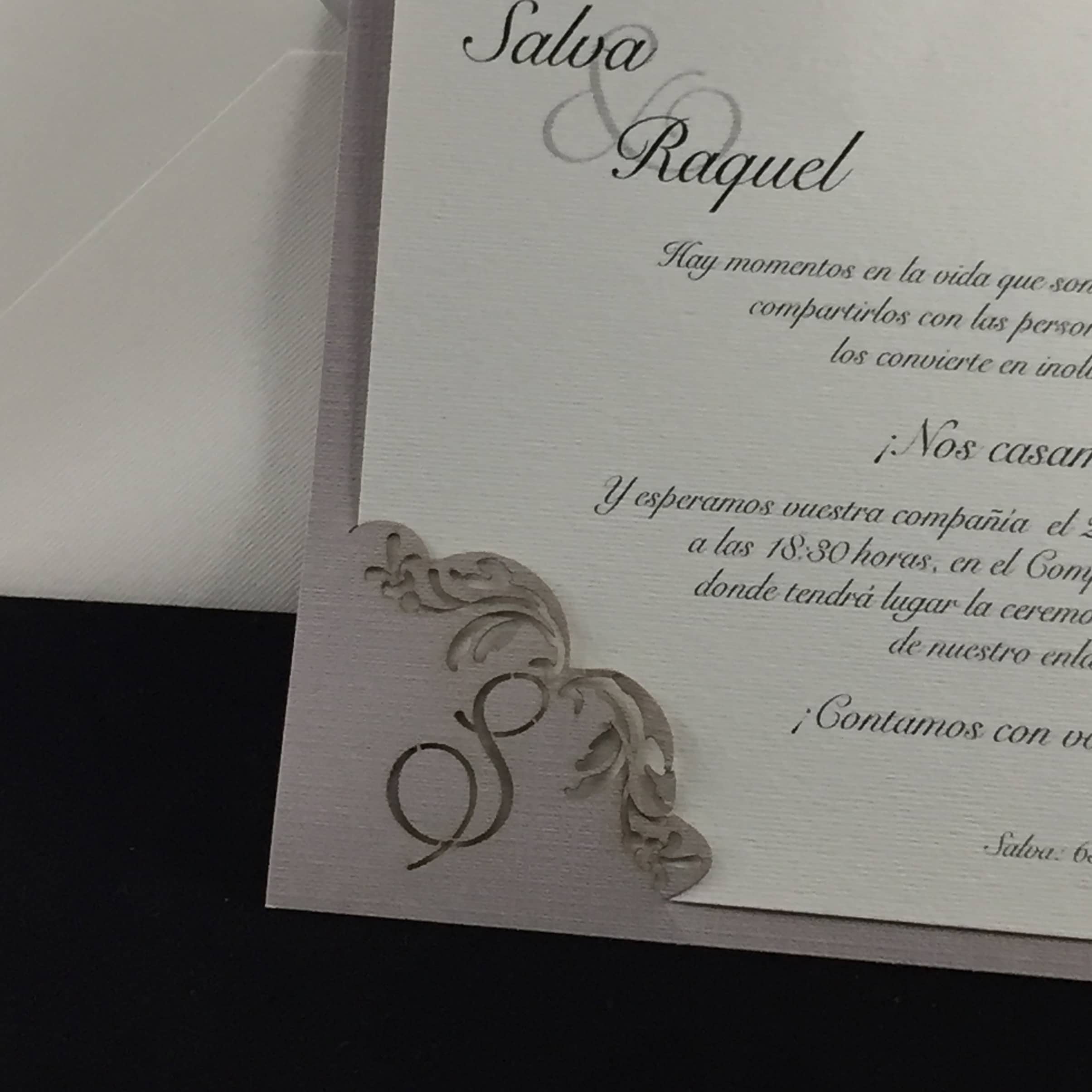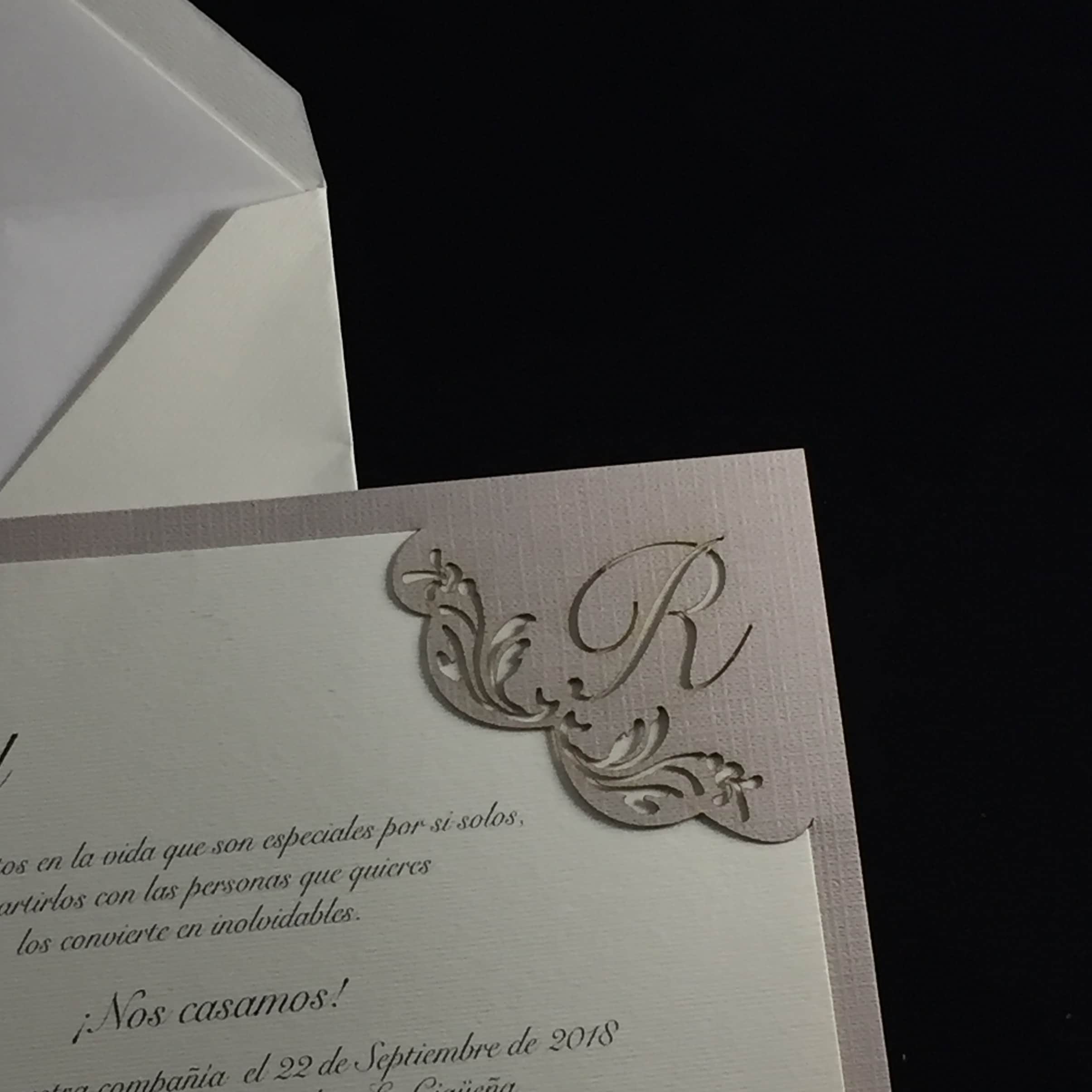 invitación de Boda con iniciales troquelada