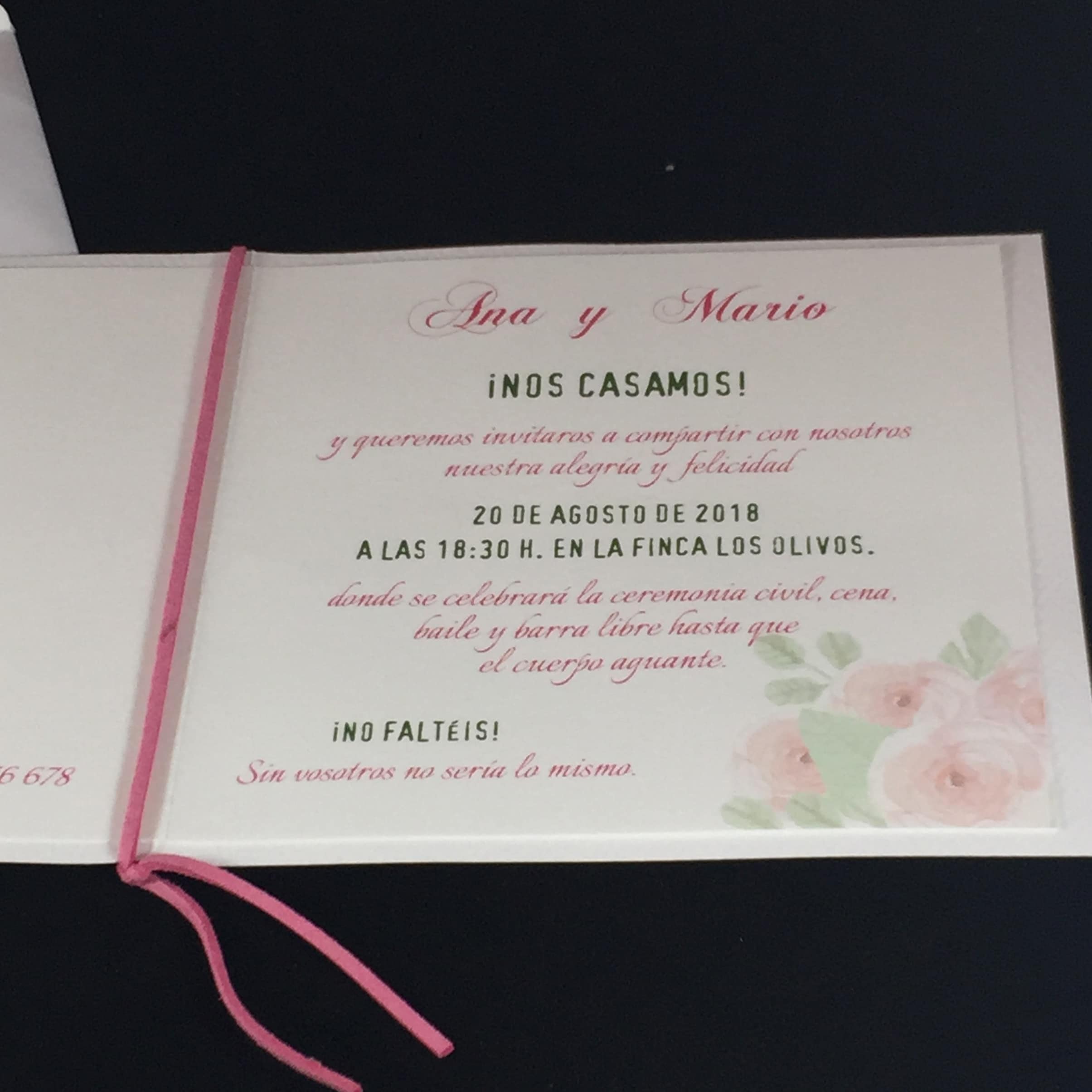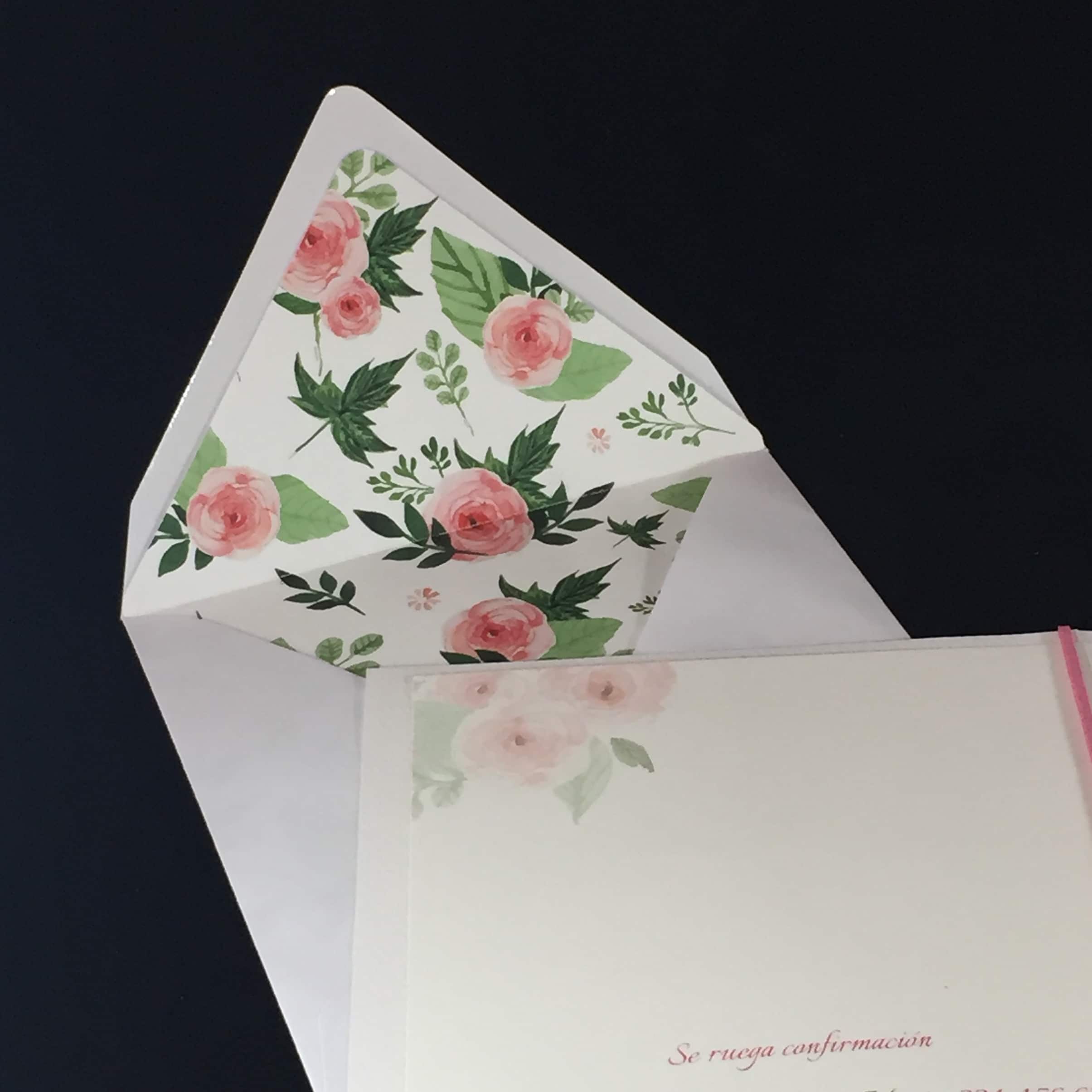 forro interior del sobre diseño flores como la tarjeta de boda.